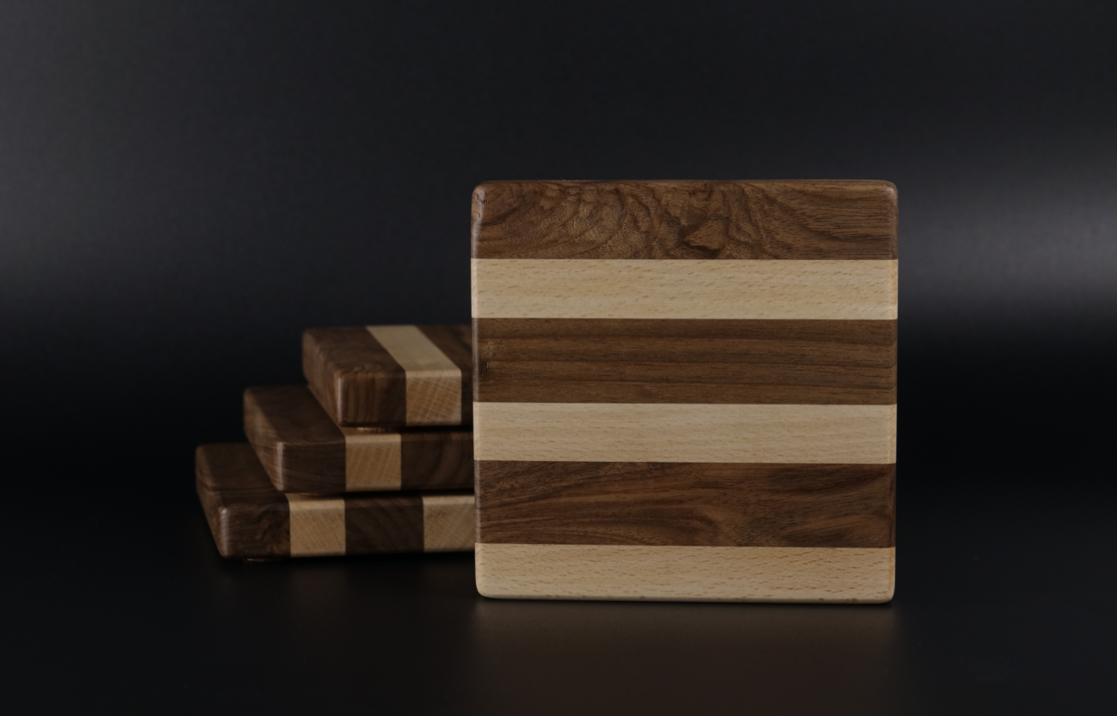 Setul conține 4 suporturi (114 × 114 × 16 mm fiecare), atent realizate și selectate pentru a forma un ansamblu coerent și echilibrat vizual. Fiecare set este unic și realizat în serie limitată.