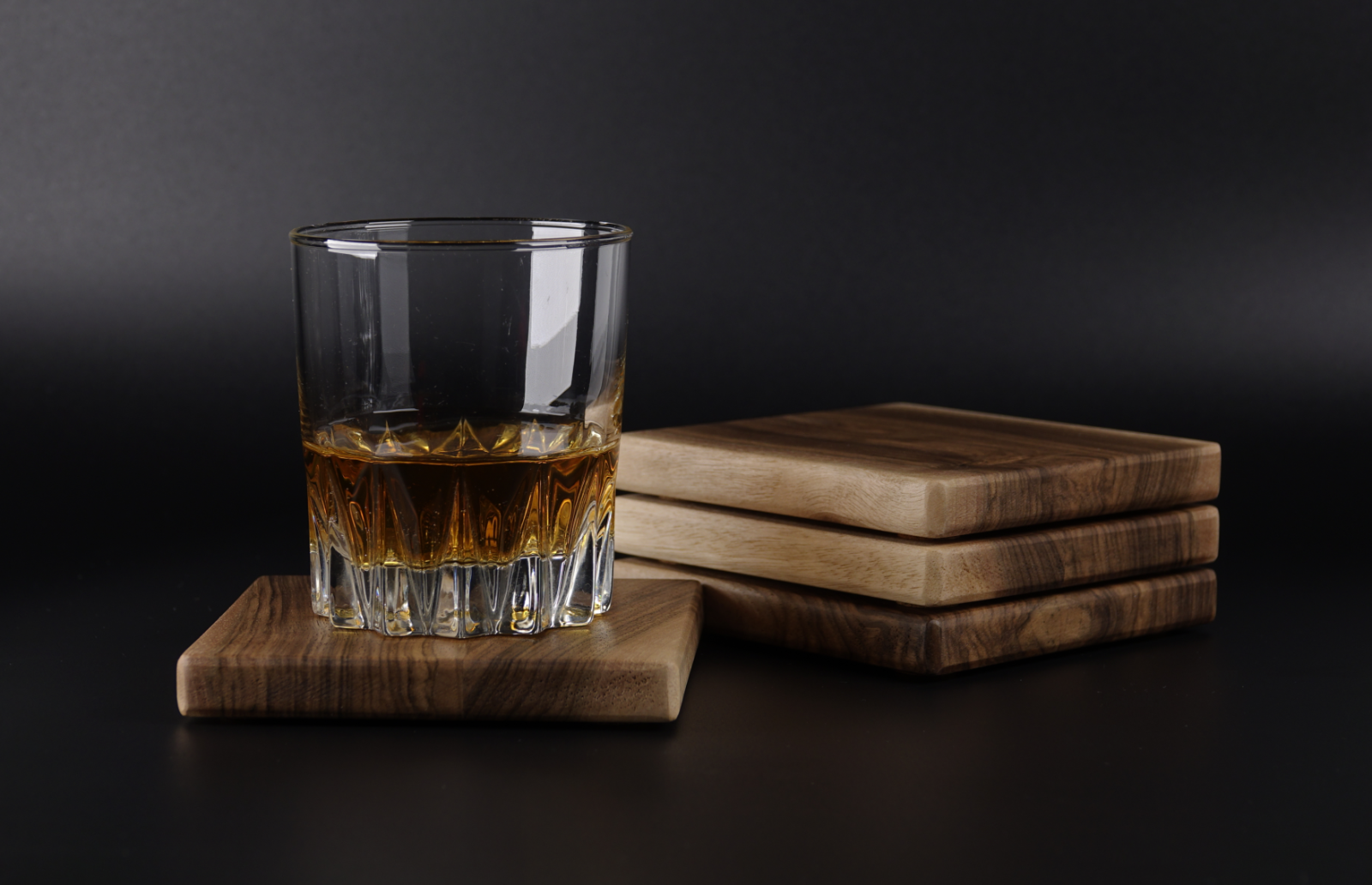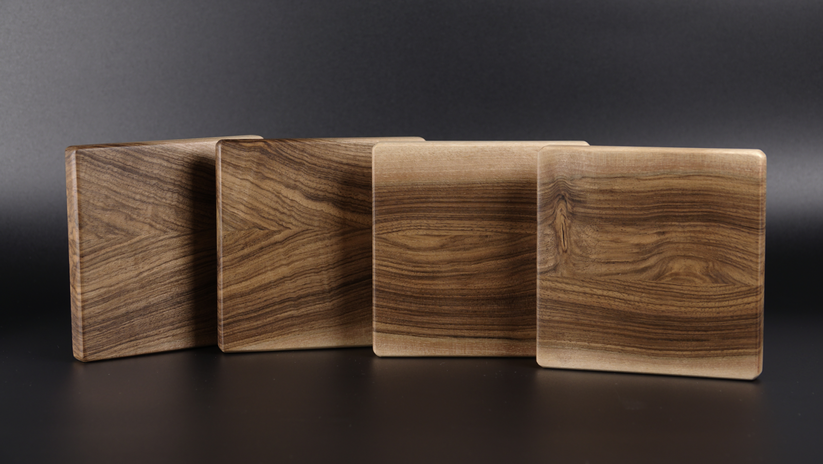 Fiecare piesă este realizată manual din lemn masiv de nuc, păstrând caracterul autentic al materialului. Zonele mai deschise nu sunt adăugate, ci provin din structura naturală a lemnului, oferind unicitate fiecărui suport, în timp ce întregul set rămâne armonios din punct de vedere vizual.