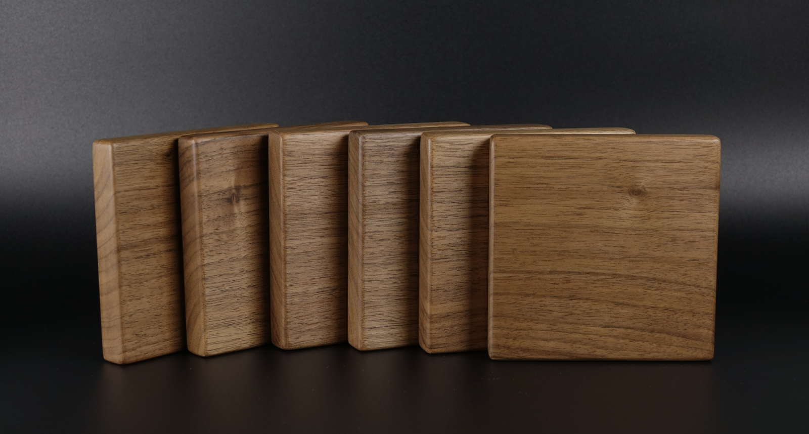 Realizate integral din nuc, aceste suporturi sunt atent selecționate și grupate în seturi de câte 6, astfel încât nuanțele și textura să rămână armonioase și coerente. Nu sunt piese alese la întâmplare, ci compoziții echilibrate, gândite ca un întreg unitar, pentru un efect vizual curat și premium.