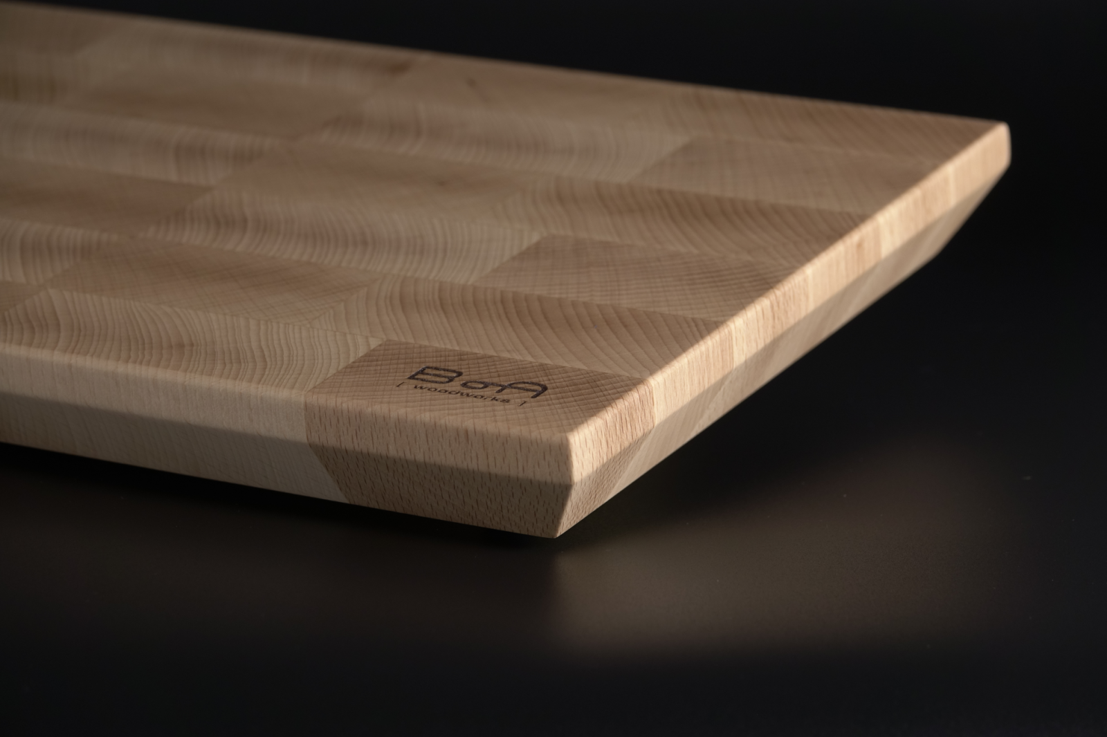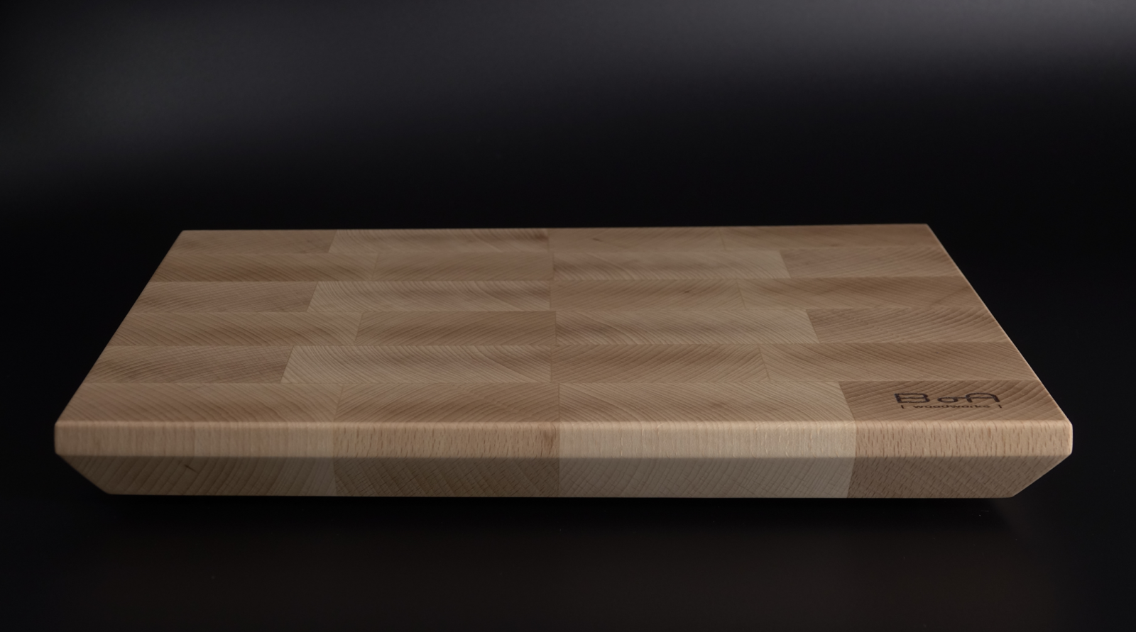 Realizat manual din lemn de fag end grain, cu picioare antiderapante din plastic (+10 mm), marginile laterale tăiate în unghi pentru ridicare ușoară. Pachetul include un amestec de întreținere cadou, food-safe.